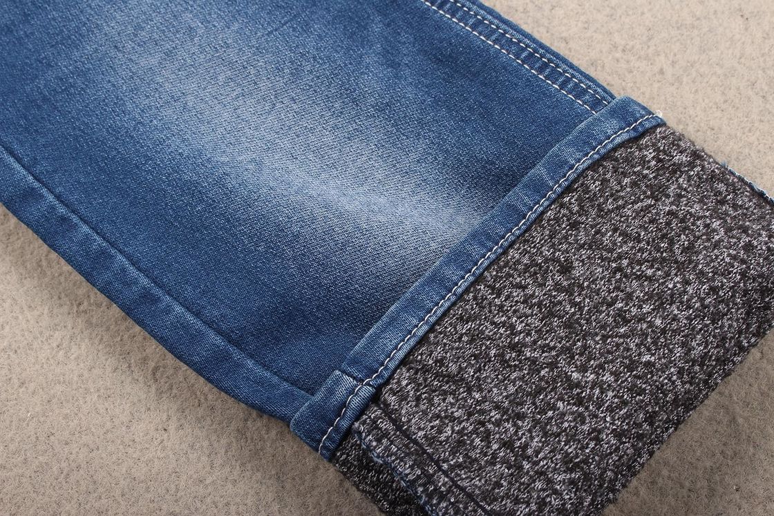 339 जीएसएम फ्लेस्ड रेयान स्ट्रेच करने योग्य डेनिम कपड़े रंगीन बैकसाइड टेरी लूप अल्ट्रा कम्फर्ट